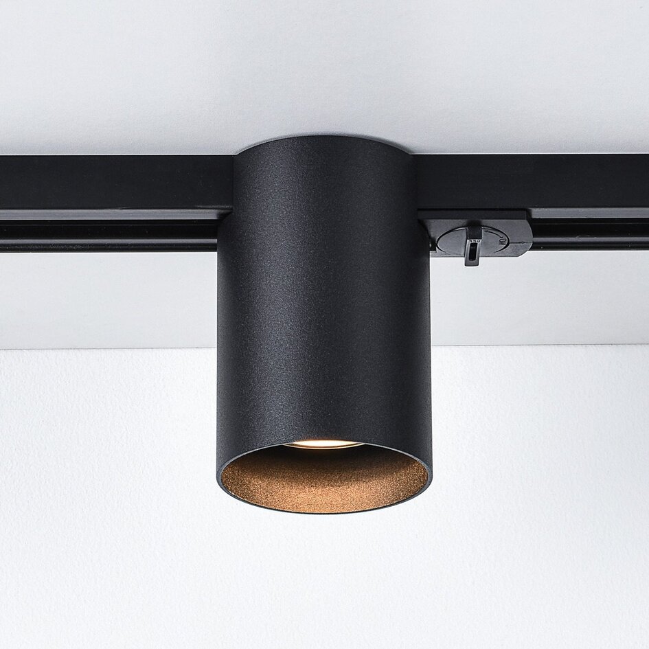 Le spot sur rail Zylox est un spot compact pour éclairage sur rail monophasé, adapté à un usage intérieur, comme dans la cuisine, le salon ou le bureau. Le spot éclaire uniquement vers le bas et est conçu pour un éclairage ciblé. Sa forme cylindrique avec finition noire et sa source lumineuse encastrée assurent une diffusion de lumière concentrée et contrôlée.