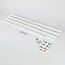 Ce kit de démarrage se compose de 4 rails de 75 cm, y compris un bloc de connexion et un embout, 3 connecteurs droits et 1 connecteur à 90 degrés, ainsi que du matériel de montage. Avec les connecteurs fournis, vous pouvez former un rail droit ou créer une forme en L. Si vous souhaitez créer une forme en U, commandez un connecteur à 90 degrés supplémentaire. Pour créer une forme en T, commandez un connecteur en T et un embout supplémentaire. Le rail en aluminium peut être coupé sur mesure à l'aide d'une scie à métaux et d'une boîte à onglets. Le rail comporte des trous pré-percés pour faciliter le montage. Des trous supplémentaires peuvent être percés si nécessaire.