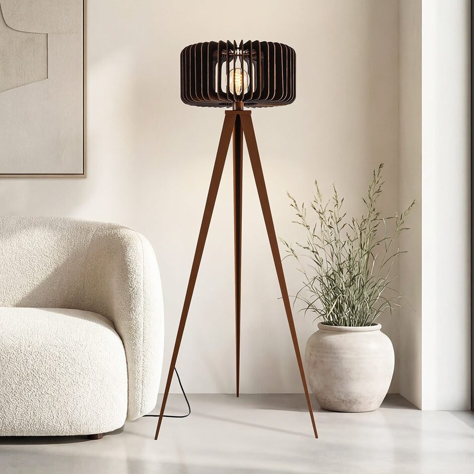 Le lampadaire Oakly est un luminaire design plein de caractère qui apporte chaleur et ambiance à votre intérieur. L'abat-jour ouvert avec ses lamelles verticales en bois crée un joli jeu d'ombres et de lumières, tandis que l'aspect noyer lui confère un look riche et naturel. Le pied métallique élancé à trois branches donne au lampadaire une silhouette aérienne et moderne. La lampe est équipée d'une douille E27 (source lumineuse non incluse), ce qui vous permet de choisir vous-même la source lumineuse qui correspond à l'ambiance souhaitée. Oakly trouve parfaitement sa place dans le salon, à côté d'un fauteuil, ou comme accent décoratif dans un intérieur moderne ou scandinave.
