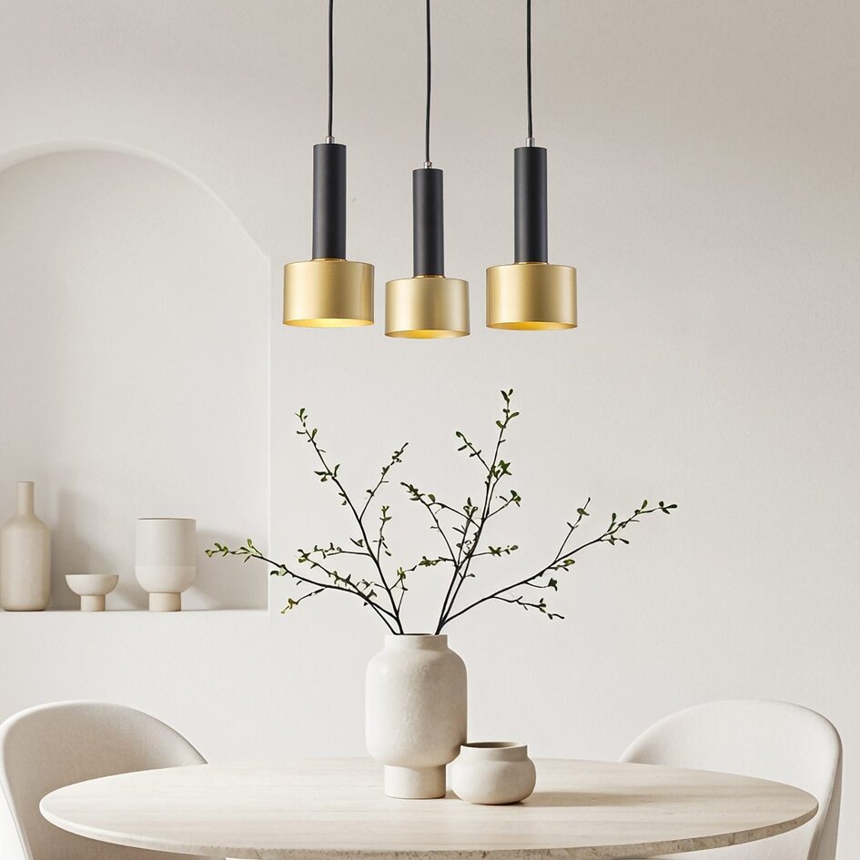 Vous êtes à la recherche d'une lampe suspendue moderne avec trois points lumineux distincts ? Alors la suspension Chantal est la lampe qu'il vous faut ! Les trois points lumineux ont chacun une monture noire mate avec un bord doré. Cette combinaison rend la Chantal idéale pour éclairer au-dessus de la table à manger. Le bord doré donne au plafonnier un bel éclairage d'ambiance et rend la Chantal indispensable dans tout intérieur !