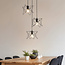 Deidre a un diamètre de 450 mm et mesure 1530 mm de hauteur. Le matériau utilisé est le fer pour le cadre et le verre fumé de couleur grise pour les ltrois lampes. Cette lampe suspendue utilise trois sources lumineuses LED E27 (dimmables) (sources lumineuses non incluses). La puissance maximale des sources lumineuses est de 60W par source lumineuse.