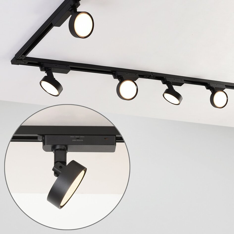 Dans un système de rails monophasé, tous les spots sont connectés à un seul groupe, ce qui rend les rails plus raffinés et plus adaptés à un usage grand public. Un système de rails triphasé est plus souvent utilisé dans les magasins et autres espaces commerciaux. Dans ce cas, les spots sur rail peuvent être allumés et éteints séparément sur 3 groupes.